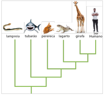 A imagem abaixo retrata o relacionamento filogenético de alguns dos vertebrados.