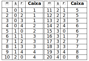 • se r = 0, então a bola de numeração n será colocada na caixa de numeração 2k;