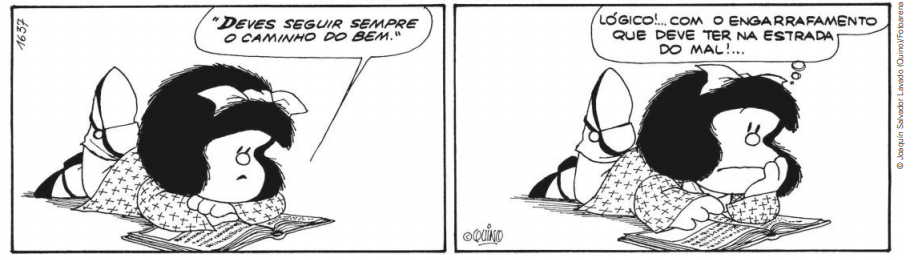 VOCÊ CONHECE A PERSONAGEM MAFALDA? ELA ADORA LER. VAMOS VER O QUE ELA ESTÁ LENDO AGORA?