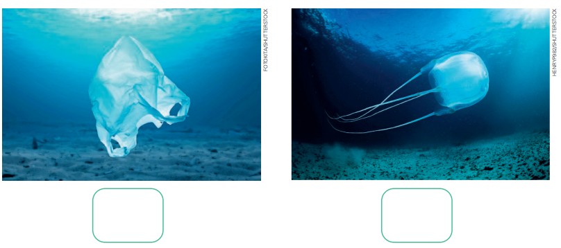 A TARTARUGA-DE-COURO É A MAIOR DE TODAS AS TARTARUGAS MARINHAS E ALIMENTA-SE PRINCIPALMENTE DE ÁGUAS-VIVAS. MAS, ÀS VEZES, ELA CONFUNDE SACOLAS DE PLÁSTICO COM SEU ALIMENTO. ISSO PODE SER MUITO PERIGOSO, POIS AS SACOLAS NÃO SÃO COMIDA E PODEM PREJUDICAR A SAÚDE DA TARTARUGA.