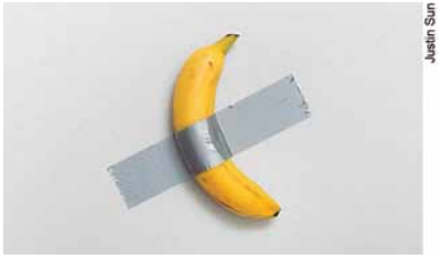 Criada como uma crítica satírica ao sistema da arte, a peça de Maurizio Cattelan questiona o que pode ou não ser considerado arte, além de denunciar as desigualdades na maneira como os artistas são remunerados em vendas de leilões, especialmente em comparação com galerias. “Com base em que um objeto adquire valor no sistema da arte?”, questionou o artista.